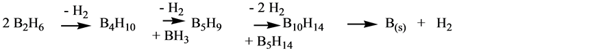 The process follows a similar mechanism to the transformation of B2H6 in species of borane with higher rate of B/H. It conduces to higher B-B bonding and hydrogen generation, just as it is shown in the following Scheme 4: