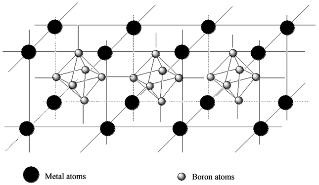 Figure 1. Structure of metal boride type MB2 and higher MBn.