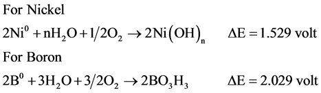 Metallic nickel produces NiO in atmospheric condition while boron in same conditions yielded higher boron oxides and boric acid than Ni˚ oxidation. Similar behavior was reported by Glavee [3] .