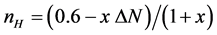 The Fermi level of Ni falls slightly below the 3d-band and the magnetism is a consequence of the unpaired moment spin of about 0.6 holes per atom in the d band. The magnetic moment of Ni in the NiB is almost due to the unpaired spins of the electrons. The magnetization intensity in Bohr magnetons is practically equal to the number of holes in the d-band. With 0.6 vacancies per Ni atom in the d-band and a contribution of N electrons per atom of the added dopants, the number of holes (nh) could be calculated [18] with the following Equation (9):