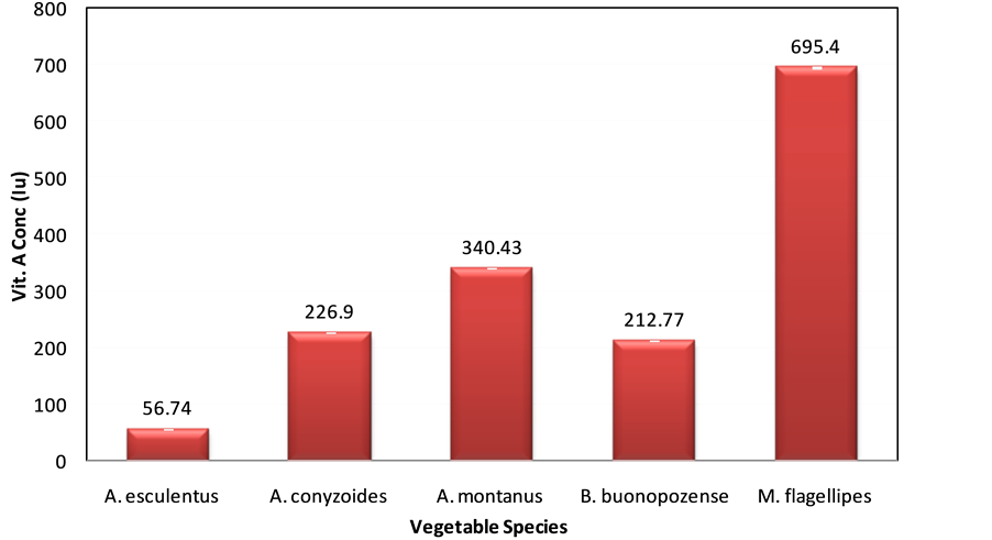 Figure 1. Vitamin A contents of five traditional leafy vegetables of southeast Nigeria.