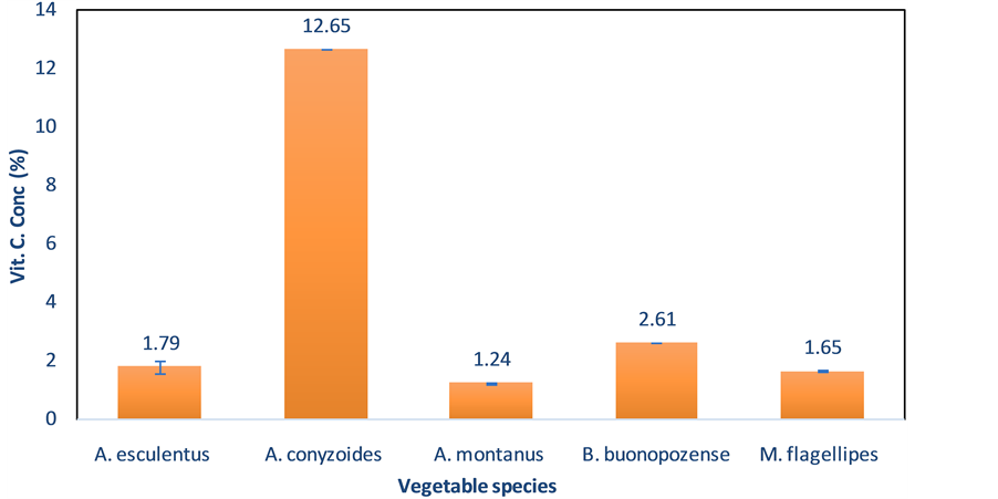 Figure 2. Vitamin C content of five traditional leafy vegetables of southeast Nigeria.