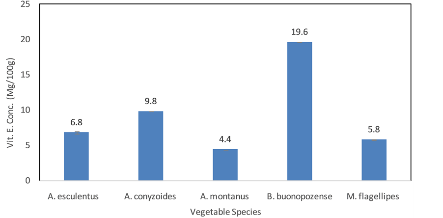 Figure 3. Vitamin E contents of five traditional leafy vegetables of southeast Nigeria.