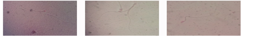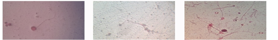 This indicates that plants constitute an important part of the primary healthcare system in developing world [16] . In our study, At the end of the experiment, the obtained sperms shapes were as below: In mice treated with Salvadora persica leaf extract as shown in Figure 1, at concentration 0.5% and 1.0%, normal sperms, while in 1.5%, circular head and short tail. Two tails attached to one head in 2.0%. At 0.5% and 1.0% of mice treated with Moringa pergrina leaf extract exhibited normal sperms whereas ecircular head and short tail obtained in