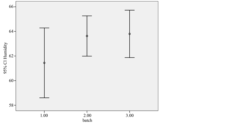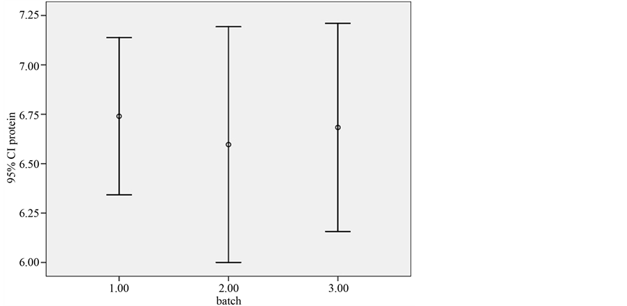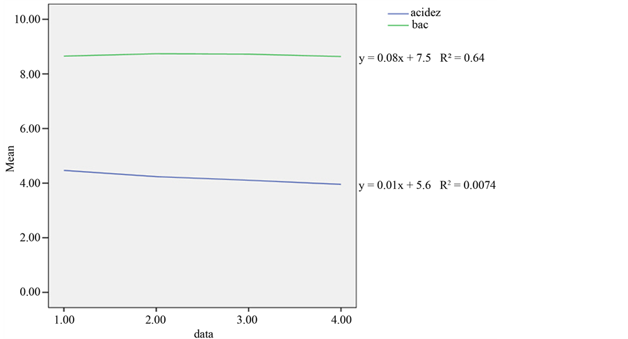 A descriptive analysis of results was undertaken. Averages of batches were compared by analysis of variance (ANOVA); means of microbiological data were compared by Tukey’s test at 5% probability; co-relationship between acidity and the counting of lactic bacteria was done by Pearson’s coefficient of co-relation [10] .
