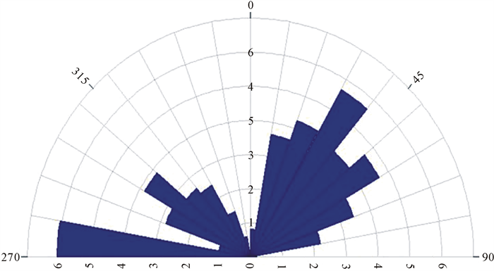 Figure 6. Rose (azimuth-frequency) diagram of lineaments orientations.