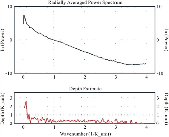 zt and zb are depths to top and bottom of the magnetic sources respectively, K is a function of wavenumber, which is expressed in radians per unit distance. From the depth estimate curve (Figure 10(b)), the depths to the magnetic sources in the area ranged from 100 to 2500 m.