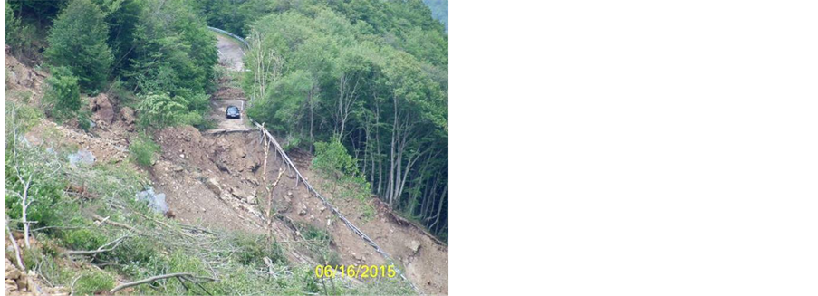connects Tskneti-Akhaldaba, is damaged and overlaid by landslide broken rock-clay materials (Figure 16).