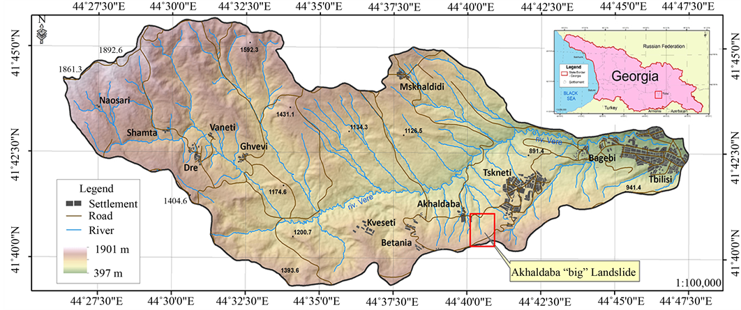 In Tbilisi city area and among the Riv. Vere tributaries the catchment basin of Riv. Vere and its gorge occupies a distinguished place in respect of relief peculiarities and the significance of development (Figure 1). Riv. Vere flows into Riv. Mtkvari from the right side at the Heroes Square. The total length of it is 38 km and the catchment basin is 194 km2. There are many important facilities and historical or cultural monuments in this catchment basin, such as Tbilisi State University buildings, TV and Circus buildings, Zoo, residential buildings and historical cultural monuments.