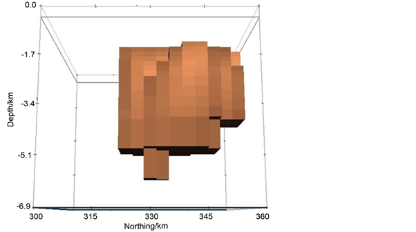 Figure 14. 3D model of the Kribi dense intrusive body as viewed from the North.