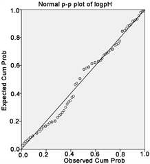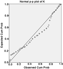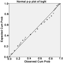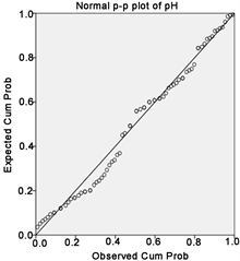 Statistical parameters which are generally accepted as indicators of the central tendency and spread of the data, were analyzed. These include description of mean, minimum and maximum values, standard deviation and coefficient of variation. To decide whether or not the data followed the normal frequency distribution, the coefficients of skewness and kurtosis were examined [15] . These statistical parameters were calculated using SPSS 20.0 release software [16] . The coefficient of variation (CV) was mainly used to assess the variability of the different data sets. Exploratory data analyses for normality tests were conducted. Normality tests were conducted using Q-Q plots [10] [17] Non-normal data were transformed to stabilize the variance. Then normality tests were recalculated using the transformed data, as asymmetry in the distribution of data has an important effect on the geostatistical analysis [18] .