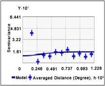 Variograms and kriging interpolation were performed in ArcGIS 10.2. The formula applied to the variogram [19] is: