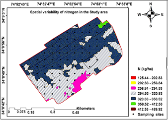 The current study was undertaken in the Research farm of SKUAST-K, Shalimar for analyzing the spatial variability of soil properties and for identification of nutrient deficiency zones for site specific nutrient management.