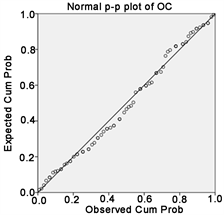 The normal distribution of data was examined by Quantile-Quantile (QQ) plot. The quantile-quantile plot (QQ plot) is a simple graphical method for comparing two sets of sample quantiles [36] . In this study, the normal Q-Q plots for the raw data were produced (Figure 2) and it was found that only OC and S followed a straight diagonal line The underlying reason for soil elements being distributed normally or non-normally may be associated with differences in management practices, land use, vegetation cover, and topographic, and topographic effects [37] .