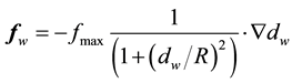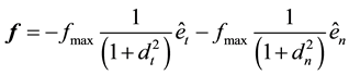 this force is such that it will decrease with distance. How exactly this decrease function looks like is unknown at the present time (it may even be random). We have used a function based on the normalized distance between