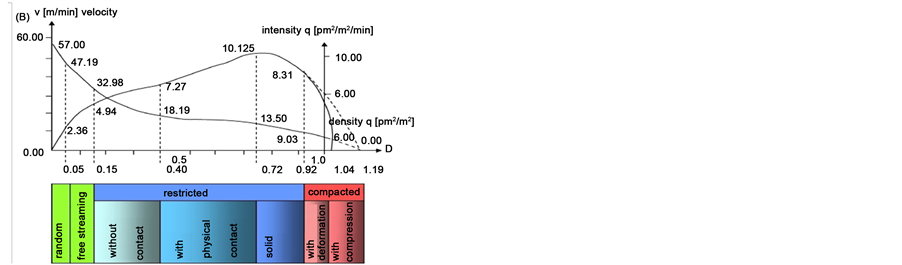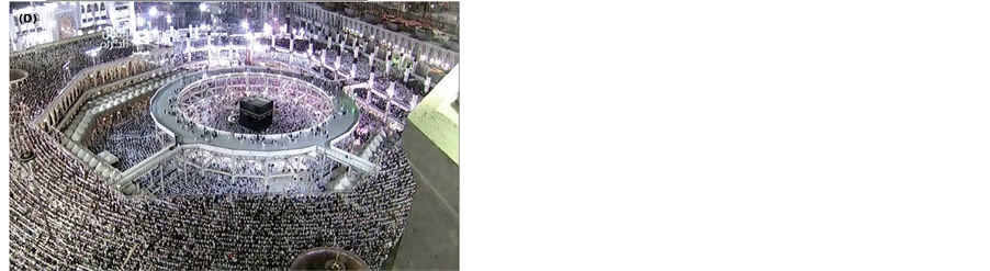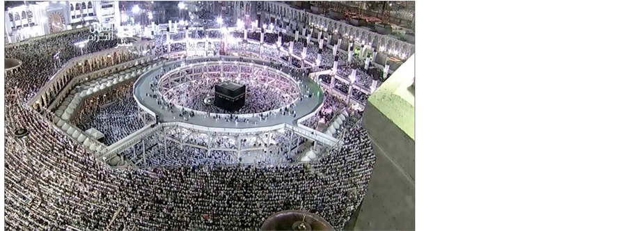 One of most important rituals in Hajj is the Tawaf, it consists of circling the Kaaba in the Holy Mosque seven times counter clockwise. Afterwards the Sa’y is performed, the walking between Safa and Marwa in an enclosed, air-conditioned structure. During Hajj seasons everything in the Mataf area is dense, and we have a compact state. The pilgrims have body contact in all directions and they have no influence on their movement, they are floated by the stream. This forms structures and turbulences in the flow. This turbulence is very well observable in our video recording [12] . Density and velocity can also be seen. The following effects could also be observed during the Tawaf: