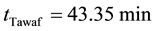The maximum number of pedestrians on the Mataf was 11,629 with a density of 2.79 persons/m2. The optimal capacity without clogging was 16,226 Tawaf/hour, calculated with an average Tawaf duration of 43 minutes. If one Tawaf is 50 minutes then the capacity of the Mataf will be 13,954 Tawaf/hour.