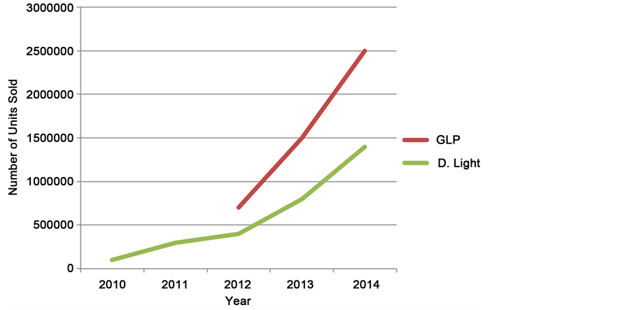 Figure 6. Annual unit sales of GLP and D. Light in India.