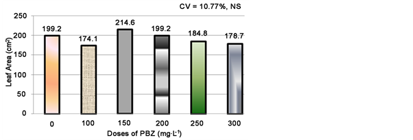 Figure 7. Effect of Paclobutrazol on the leaf area of sugarcane seed- lings (Saccharum sp.) in vitro in the acclimatization phase. (NS: Non-significant difference).
