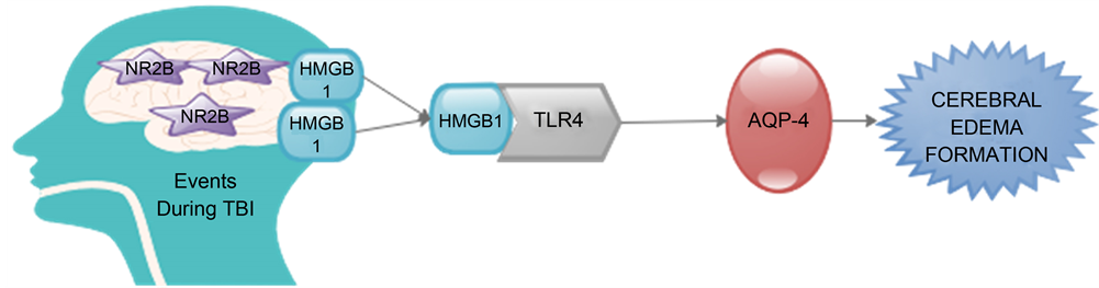 Figure 1. Activation of NR2B promotes neuronal injury and increases neuronal HMGB1 release. HMGB1 binds to TLR4 receipts thereby regulating AQP-4 and promotion of cerebral edema [27] .