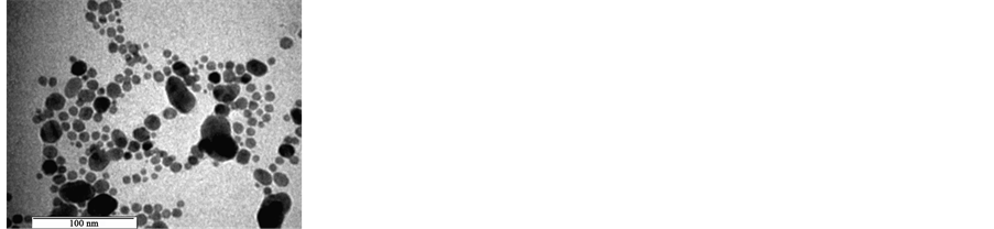 A nanoparticle is the most fundamental component in the fabrication of a nanostructure. A nanoparticle is bigger than an atom or a simple molecule that is governed by quantum mechanics [1] . Nanoparticle shaves unique properties, especially optical, electronic and biological properties [2] - [5] . Due to their high surface-to-volume ratio, nanoparticles can be used in heterogeneous catalysis [6] [7] . In addition, they are applied in many fields, including photonics, micro-electronics, lithography and surface-enhanced Raman spectroscopy [8] [9] . As noble metal nanoparticles, silver nanoparticles show unique chemical and physical properties. They have excellent conductivity, chemical stability and catalytic activity. These properties are directly dependent on their size, size distribution and shape [10] - [12] . In addition, silver materials with one- and two-dimensional nanostructures, including nanowires and nanocubes, are believed to have great potential applications [13] - [16] . Silver nanoparticles (AgNPs) can be prepared using physical methods that include evaporation-condensation and laser ablation. In particular, these two methods are used to prepare AgNPs in the form of thin films [17] . However, laser ablation can be used to synthesize AgNPs in solution [18] . In addition, AgNPs can be prepared by chemical reduction, such as microemulsion techniques [19] , UV-initiated photo reduction [20] , photo induced reduction [21] , electrochemical synthetic methods [22] , irradiation methods [23] and microwave-assisted synthesis [24] . In a biosynthesis method, AgNPs have been synthesized using bacteria [25] , fungi [26] , algae [27] and plants [28] [29] .