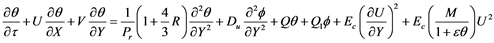 and β* are the heat and mass transfer volume expansion coefficients respectively, k is the Darcy permeability, b is the empirical constant (Vedavathi et al. [8] ), κ is the thermal conductivity, cp is the specific heat at constant pressure, cs is the concentration susceptibility, Dm is the molecular diffusivity of the species concentration,