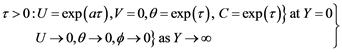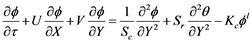 Insertion of Equations (12), (11) and (8) into (1)-(4) leads to the following dimensionless equations: