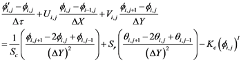 Here the subscripts i and j represent the mesh points with X and Y axes respectively and the superscripts p designates a value of time, τ = p∆τ where