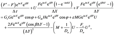 The analysis of this present problem will remain incomplete unless we study the stability of explicit finite difference method. The general term of the Fourier expansion for U, θ and ϕ at a time arbitrarily called τ = 0, is taken to be of the form eiαXeiβY, where