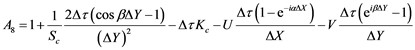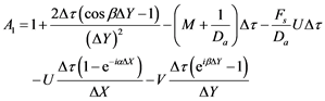 Applying the Expressions (26) and (27) into Equations (22)-(24), taking the coefficients U and V as constants over any one time step, we get the following equations upon simplification