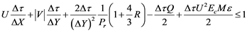 To obtain the stability criterion, it is sufficient to find out eigenvalues of the amplification matrix T* but this study is very difficult since all the elements of T* are different. So the time-step ∆τ is considered to be very small and tends to zero. Under this assumption we have A2 → 0, A3 → 0, A4 → 0, A6 → 0, A7 → 0, and the amplification matrix takes the following form