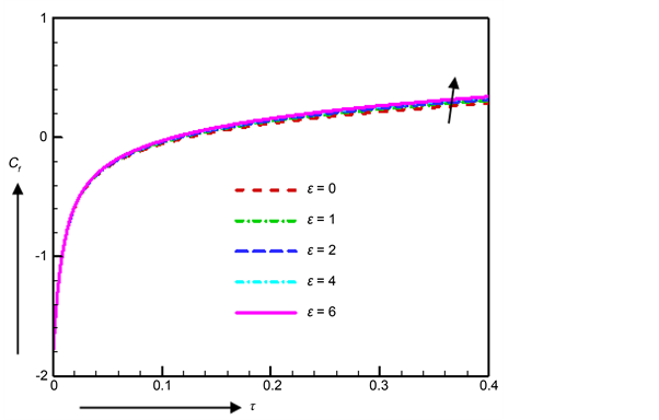 Figure 7. Skin friction for various values of ε.