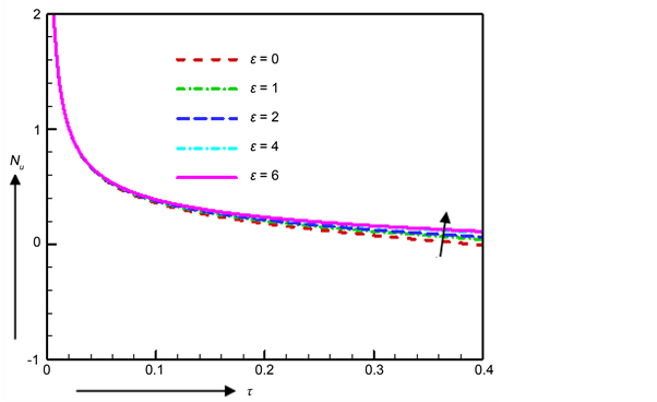 Figure 8. Nusselt number for various values of ε.