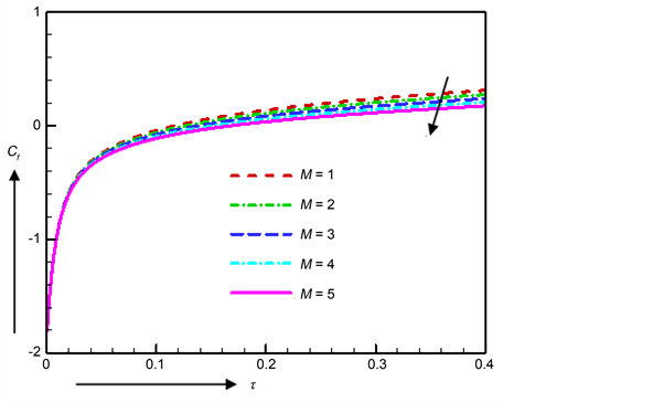 Figure 11. Skin friction for various values of M.
