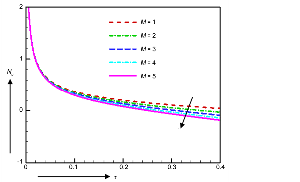 Figure 12. Nusselt number for various values of M.