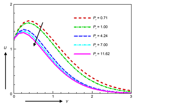 Figure 13. Velocity profile for various values of Pr.
