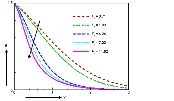 Figure 14. Temperature profile for various values of Pr.
