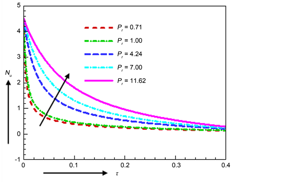 Figure 15. Nusselt number for various values of Pr.