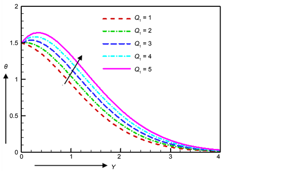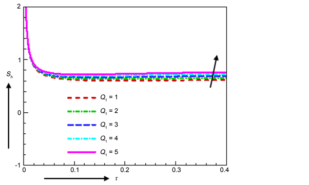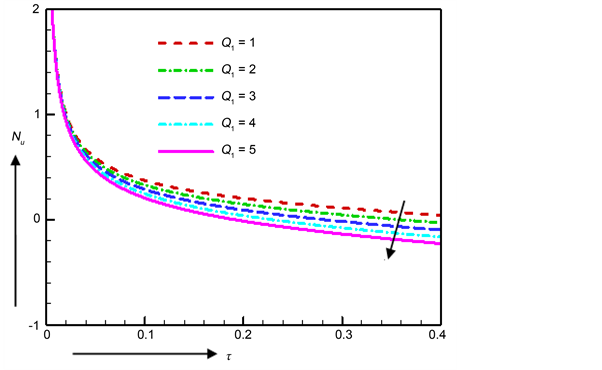 Figure 21. Nusselt number for various values of Q1.