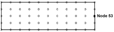 In this section, numerical results will be presented to illustrate the implementation and effectiveness of the proposed method. We present a numerical study for elastodynamic 2-D problem of a rectangular homogeneous isotropic plate [26] by using MLPG method, subjected to a dynamic force at the right end (Figure 2). A plane stress problem is considered, and a unit thickness is used. The dimensions of plate are length and height . The external excitation force , where (simple harmonic load with ) is a function of time, the damping coefficient is fixed for all numerical computation. A total number uniformly distributed nodes is used, as shown in Figure 3, to represent the problem domain.