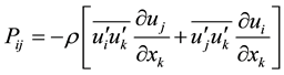 Due to gradients ways, the RSM model is characterized by the production term of the turbulent kinetic energy defined as follow: