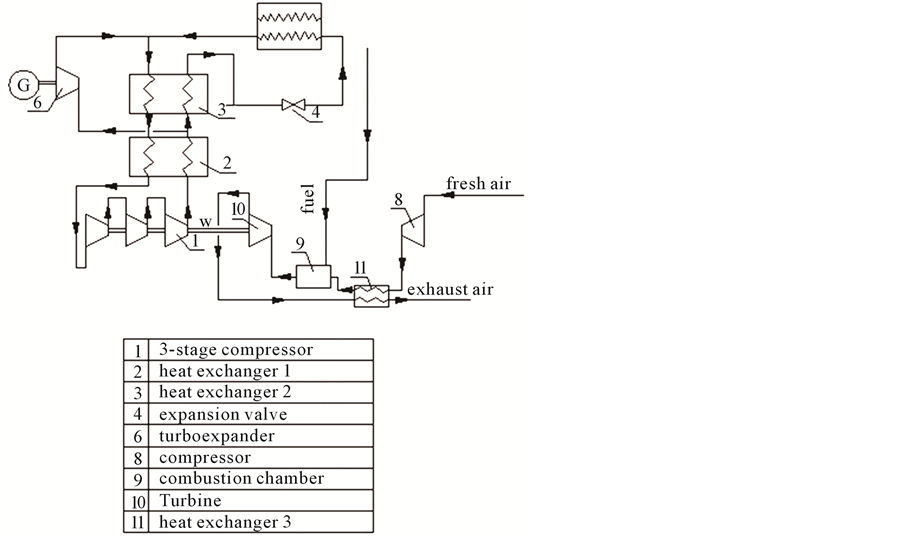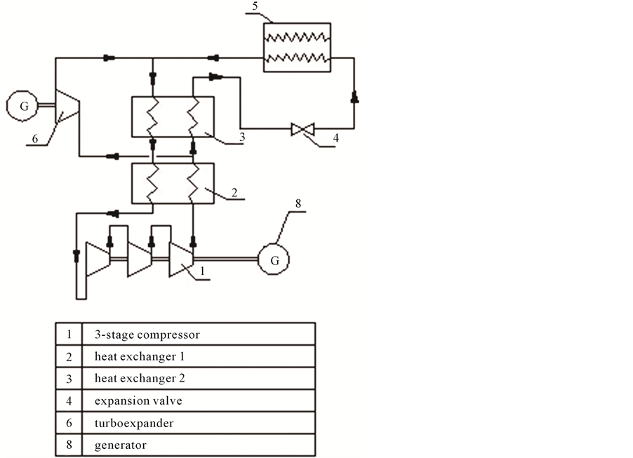 The gas turbine (Brayton cycle) to drag the Claude cycle to make the cooling capacity is showed in Figure 3.