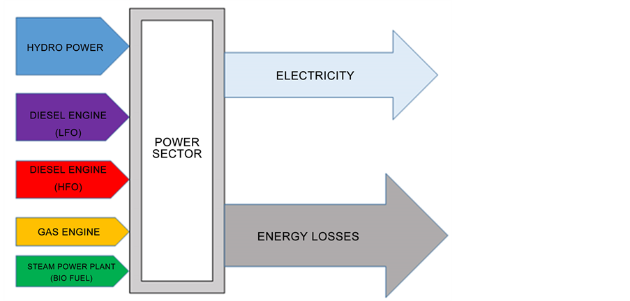 Electrical Energy in Cameroon is produced from several sources through the various power plants [7] [8] . Production sources are of two types: Hydraulic source and thermal sources with a fossil fuel (Heavy fuel oil or HFO, Light fuel oil (diesel) or LFO, and Natural Gas) and biofuel (biomass and agricultural waste).