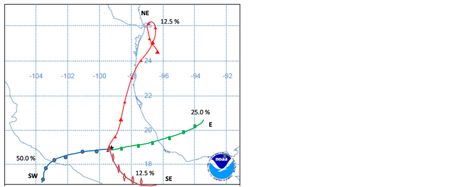 Figure 1. Typical back trajectories at Cuernavaca city from May 18 to June 30, 2012.
