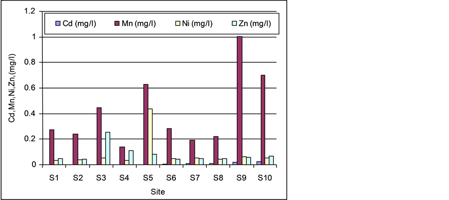 For heavy metals generally all analyzed metals showed a low concentration as shown in Table 2 and Figure 6.