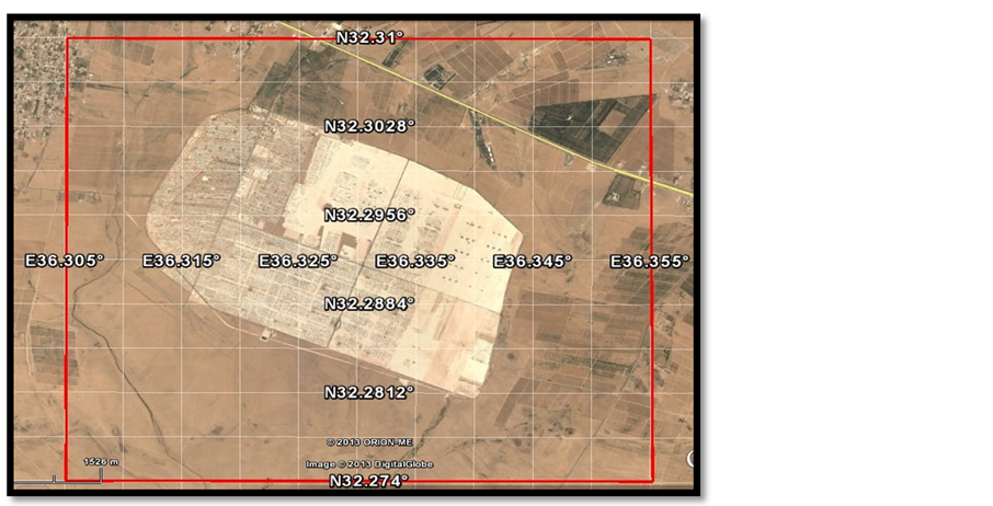 Figure 1. (a) Za’atari Camp within Jordan; (b) Za’atari Camp (Google Earth, 2013).
