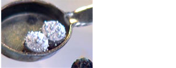 Figure 1. Heated copper amalgam pellets with mercury released, ready for trituration using a glass mortar and pestle.
