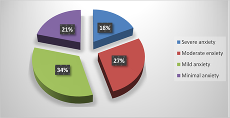 Preliminary analysis as shown the results found in our sample: (Figure 3): the percentage of Minimal anxiety was 21%, Mild anxiety was 34%, Moderate anxiety 27%, and finally Severe anxiety 18%.