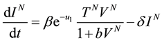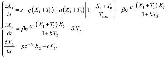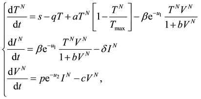 is the clearance rate of viral particles. In this model two types of drugs are taken. The first is described by chemotherapy functions