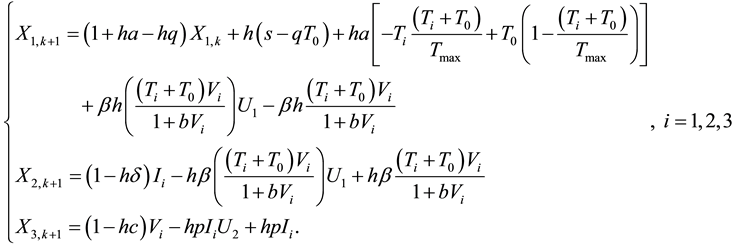 is a state vector, then the healthy improvement conditions for an uninfected human should look for reaching uninfected steady state